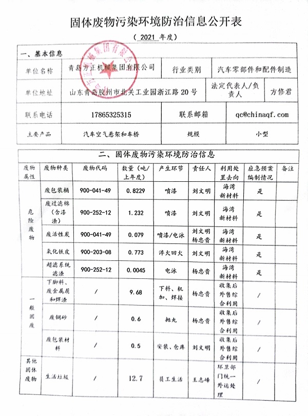 • 固體廢物污染環(huán)境防治信息公開表